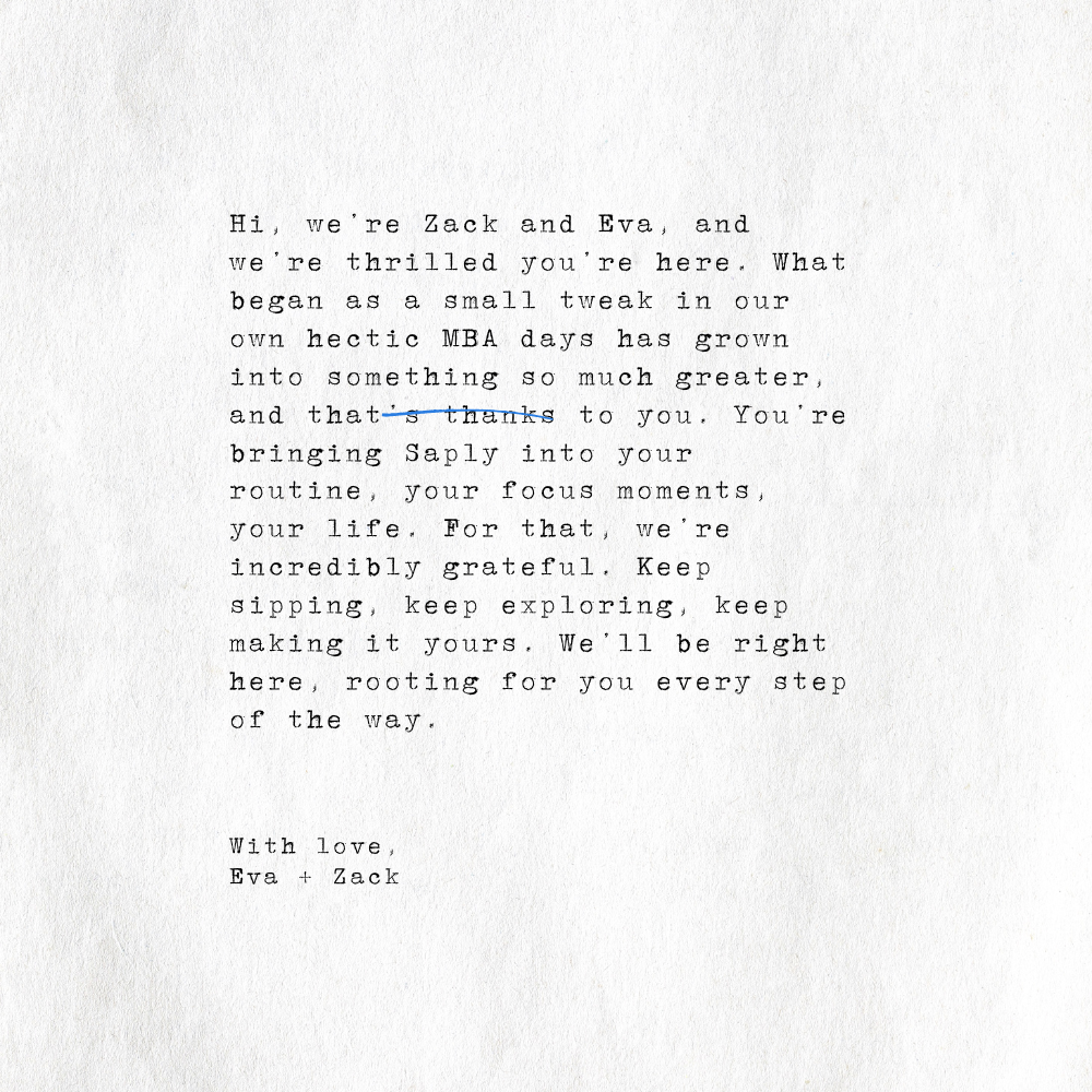 What began as a personal quest has blossomed into a real product. Today, Saply invites you to start your day with us—not just for the focus, but for the feeling of being balanced and in control. We believe what we make can help because it helped us first.